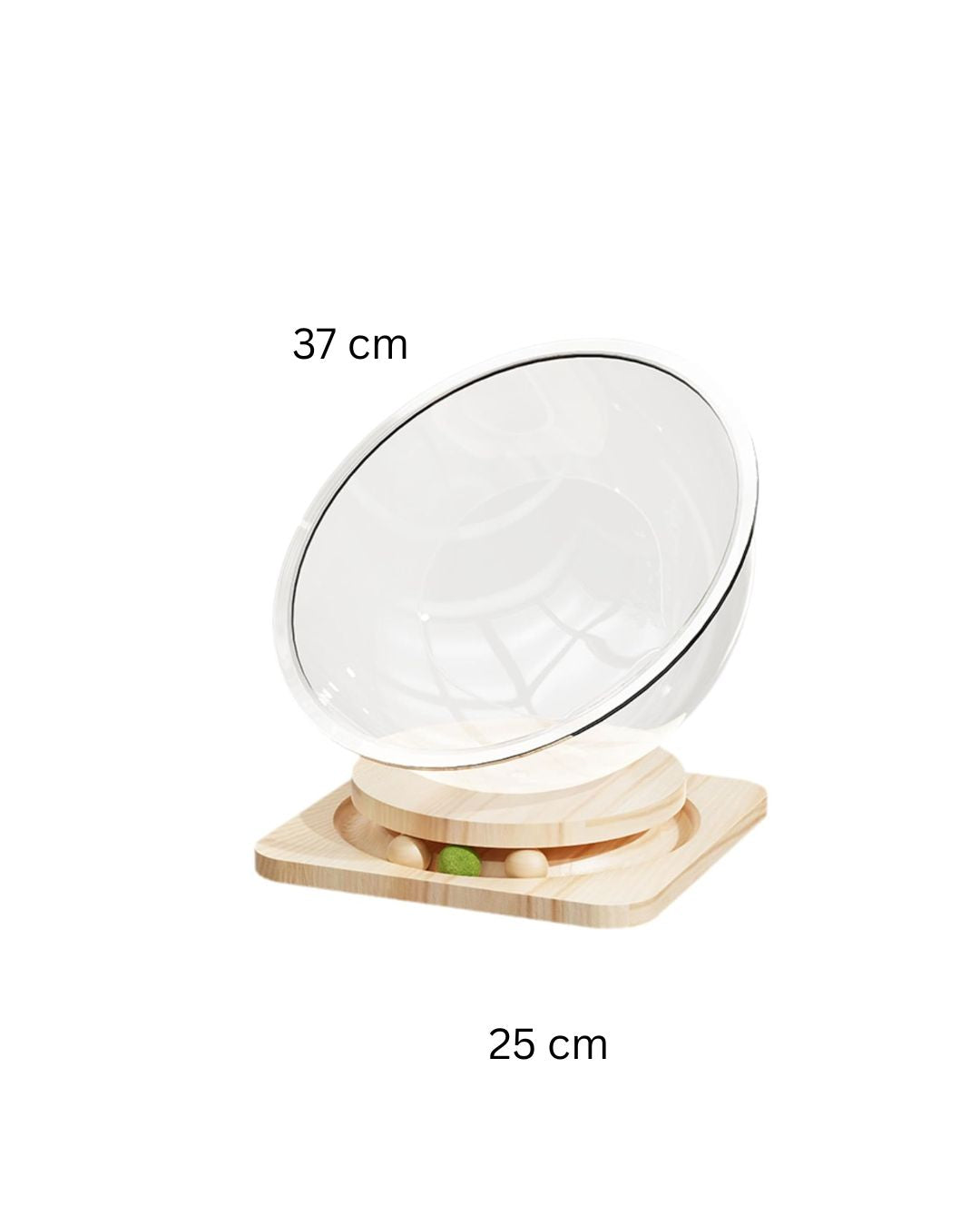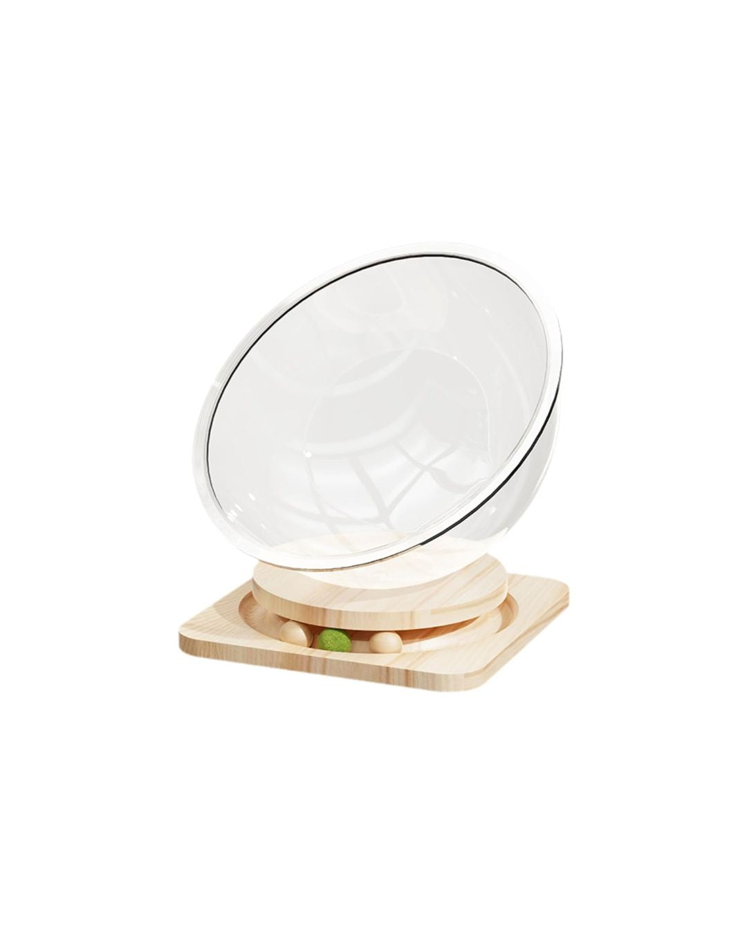 The solid wood base of the space capsule cat bed with track ball toy attracts the cat's attention and meets the cat's need for play and activity.